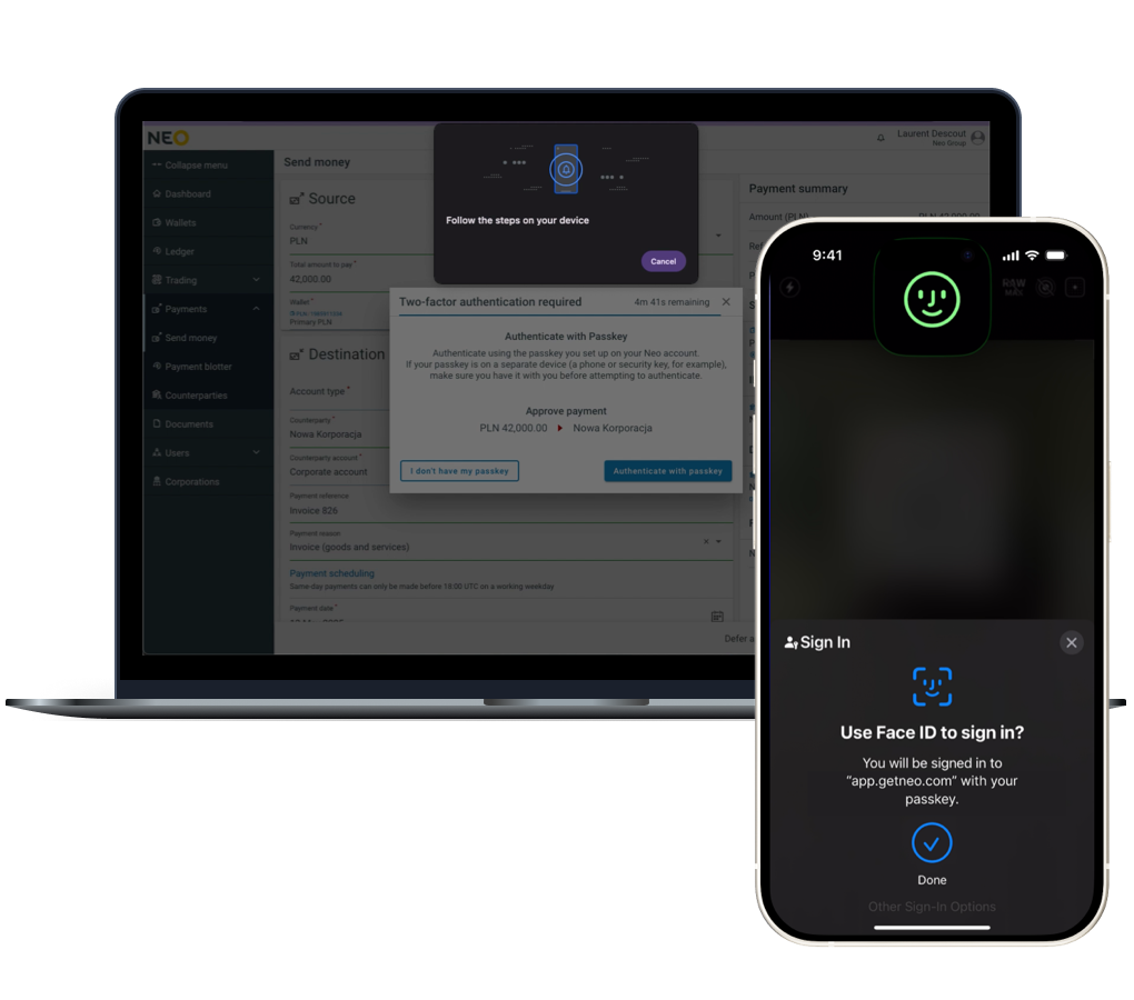 With the Neo platform, your whole team can work together: access records, validate transactions, store and retrieve documents, all in the same place.